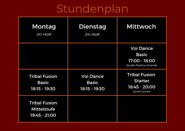 Vivien hat sich auf zwei einzigartige Tanzkurse spezialisiert: Tribal Fusion und Voi Dance. Beide Stile vereinen kraftvolle Bewegungen, kreative Ausdruckskraft und rhythmische Vielfalt, um dir eine ganz besondere Tanzreise zu bieten. In ihren Kursen kannst du deine Beweglichkeit entfalten und deine künstlerische Seite zum Leben erwecken!